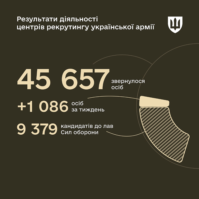 За попередній тиждень до центрів звернулося 1 086 осіб. А загальна кількість звернень досягла 45 657. Вже 9 379 кандидати розпочали процес оформлення на військову службу.