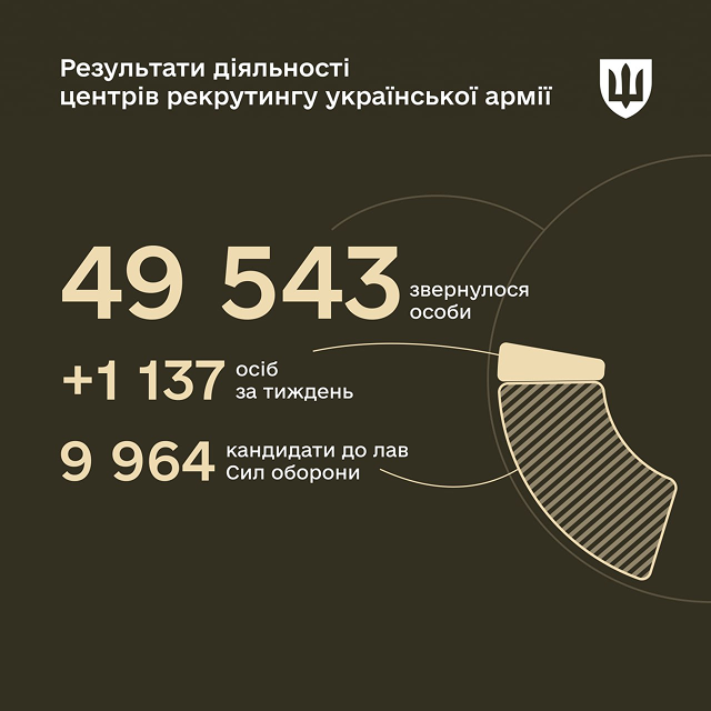 Загальна кількість звернень досягла 49 543, після яких 9 964 кандидати розпочали приєднання до Сил оборони України.