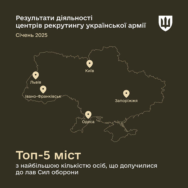 У січні 2025 року до центрів рекрутингу української армії звернулася 5 381 особа
